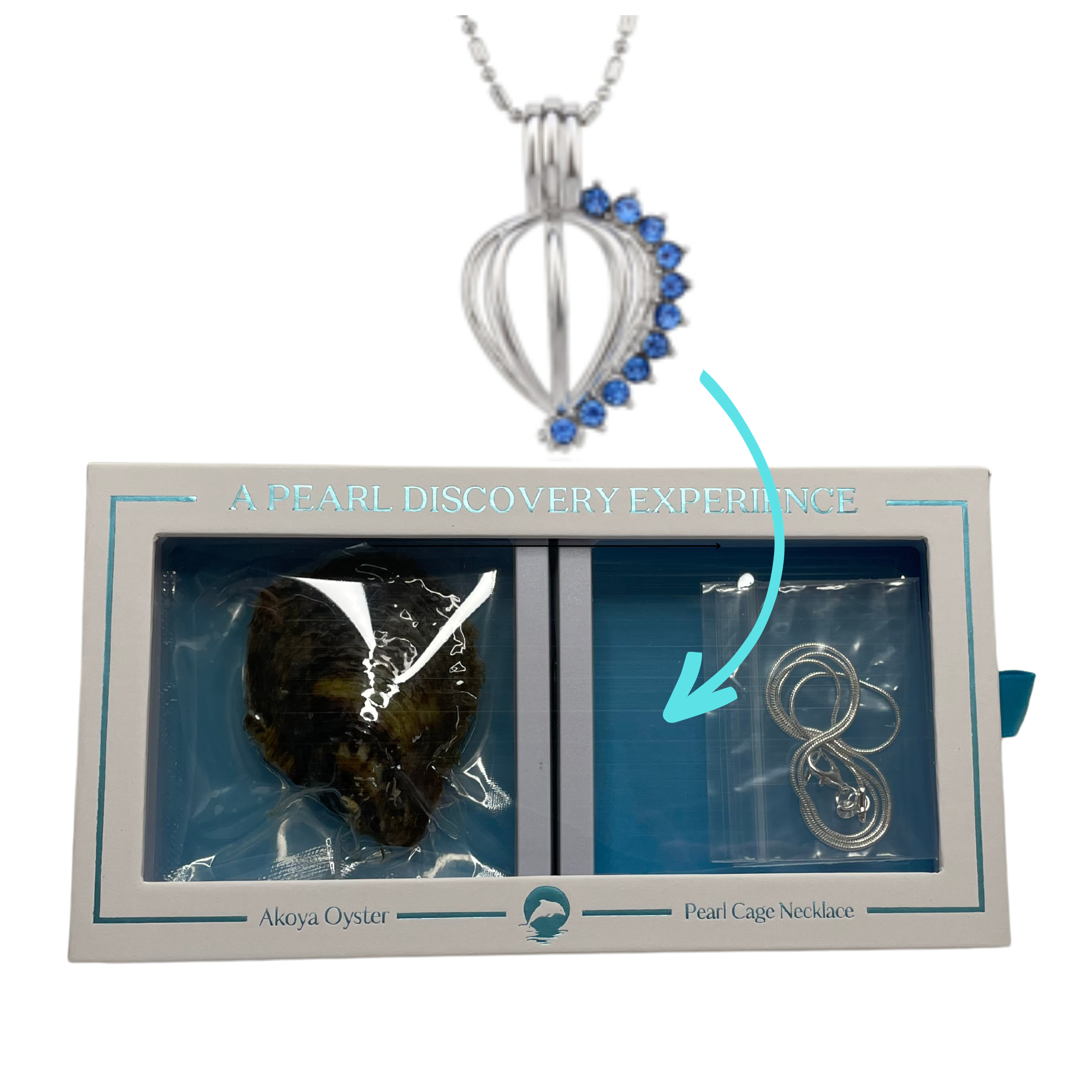 The DIY Pearl Discovery Necklace is the perfect gift. A Keepsake Necklace with an oyster. Keepsake necklaces and an oyster that has a beautiful akoya pearl inside. Keepsake necklaces are silver plated necklace. An 18" silver plated necklace will be included. An pearls in the oysters are shades of white, pink, purple, or black, with a chance to get a beautiful blue Island Pearl. The pearls range in size from 6-8.5mm, and if you are really lucky, you will get twins! Sorry, not all of the pendants hold two pearls, but thankfully the gift box has two floating cases, in the case you do get twins.