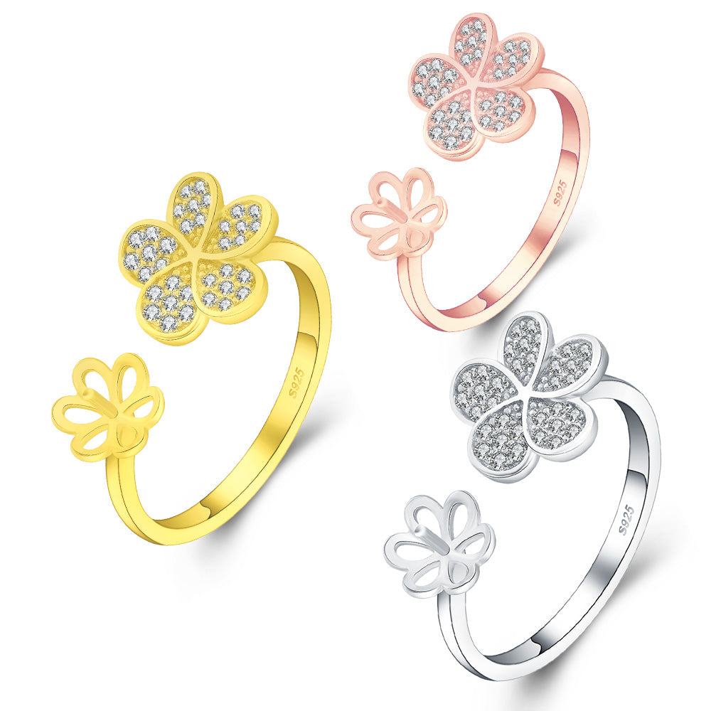 Drilled TINY FLOWER Ring, Adjustable Size, Sterling Silver GOLD