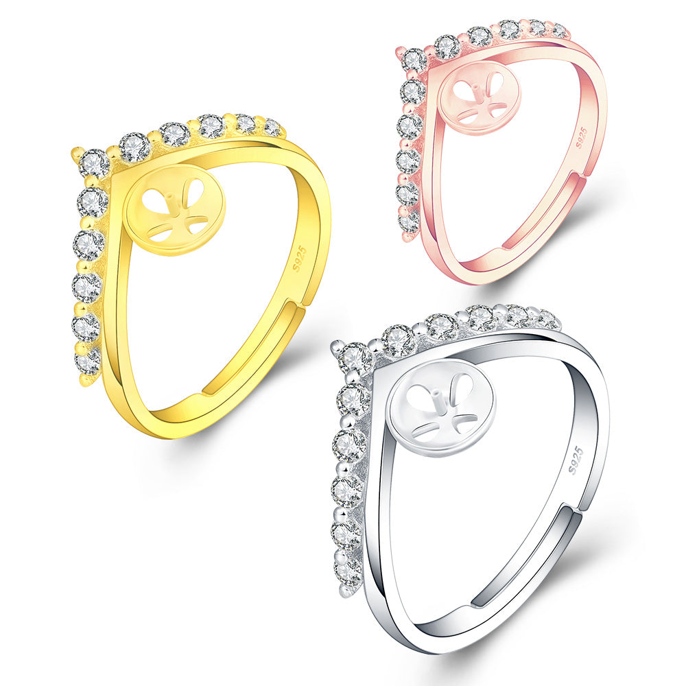 Drilled PRINCESS CROWN Ring, Adjustable Size, Sterling Silver