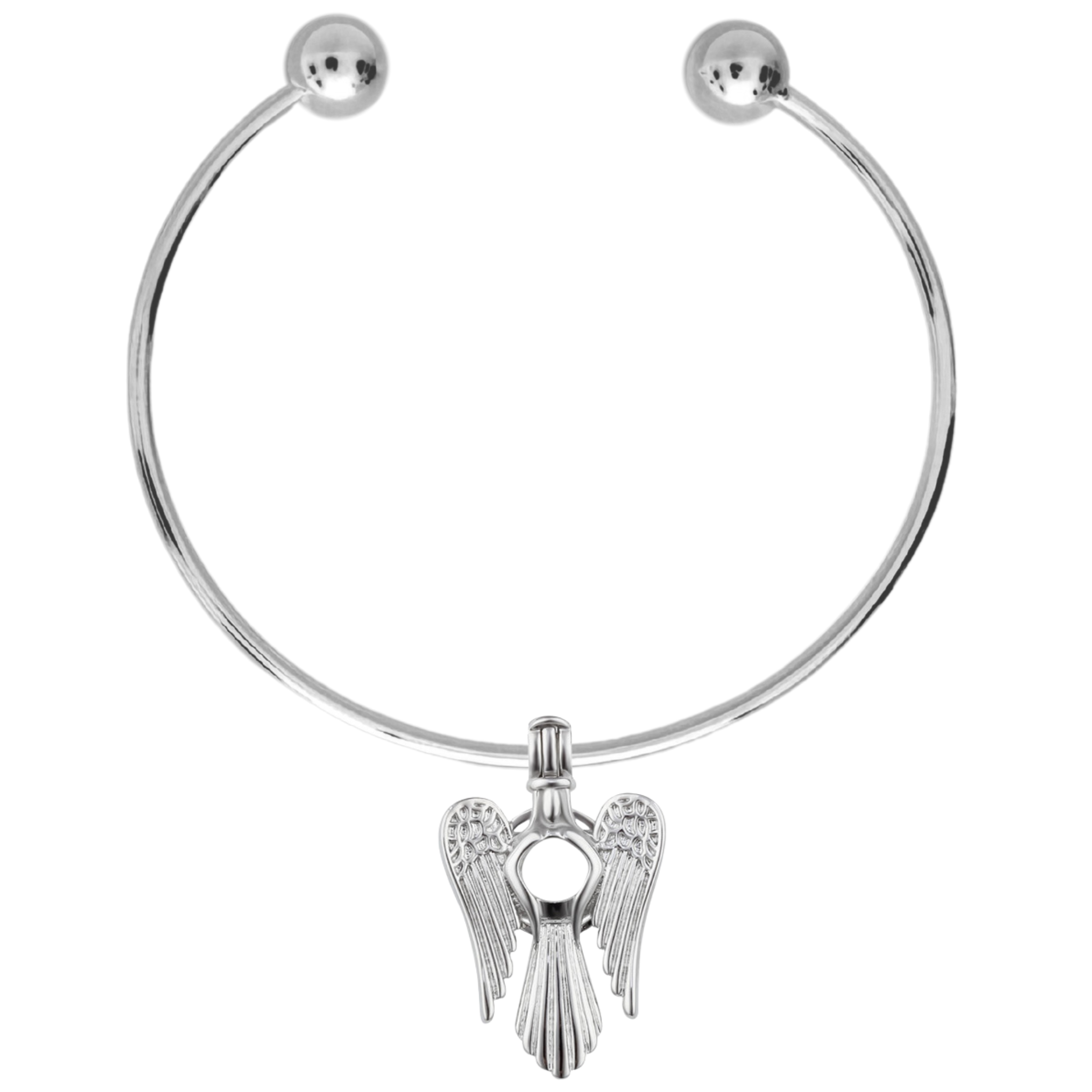 Crafted from polished stainless steel, this sleek bangle bracelet features a screw-off ball end for easy charm swapping. Each charm opens to securely hold a pearl inside, letting you personalize your look with your favorite pearls. Presented in a beautiful jewelry box, it makes a perfect gift or everyday accessory.