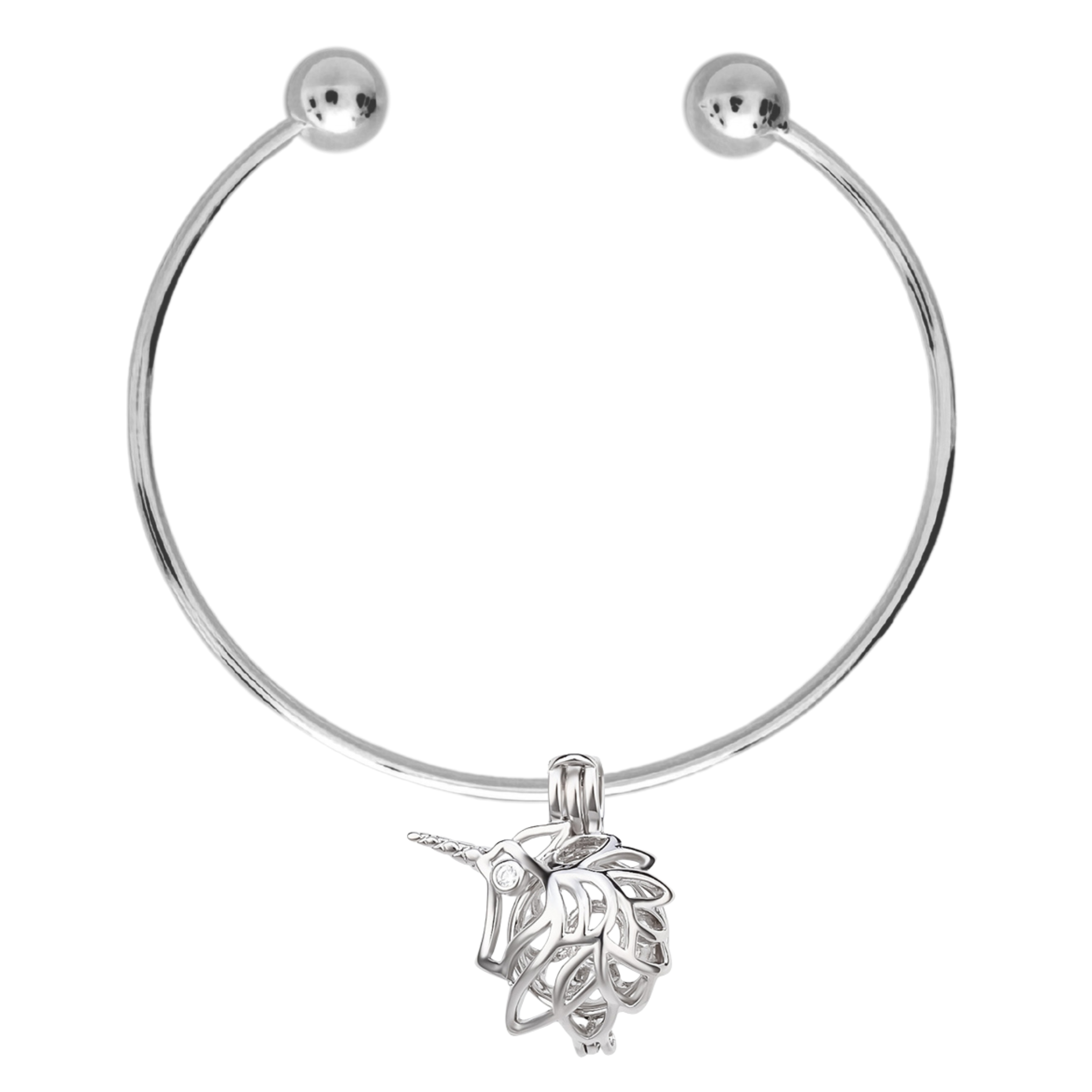 Crafted from polished stainless steel, this sleek bangle bracelet features a screw-off ball end for easy charm swapping. Each charm opens to securely hold a pearl inside, letting you personalize your look with your favorite pearls. Presented in a beautiful jewelry box, it makes a perfect gift or everyday accessory.