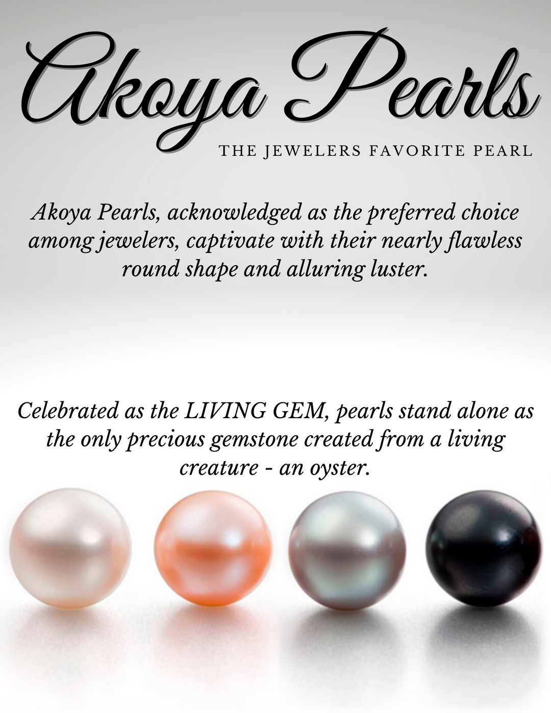 Akoya Pearls ranging in size from 6mm to 8.5mm, and sometimes twin pearls.